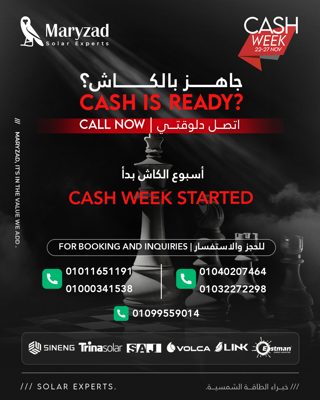 أسبوع الكاش: حدث تسعير الطاقة الشمسية في مصر 22-27 نوفمبر 2025 –